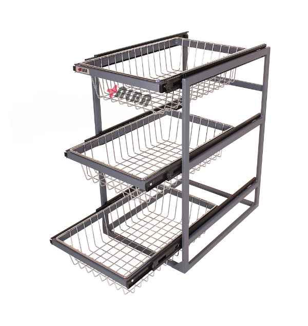 نوع ریل این سبد، ریل پهلو ایرانی است که عملکردی روان و مقاوم دارد و به راحتی باز و بسته میشود. این ریلها توان تحمل وزن بالای محتویات را دارند و بهصورت نرم و بدون صدا حرکت میکنند. همچنین، طراحی مستحکم سبد به همراه طبقات مجزا، مانع از برخورد اقلام با یکدیگر میشود و طول عمر مواد غذایی مانند پیاز و سیبزمینی را افزایش میدهد.