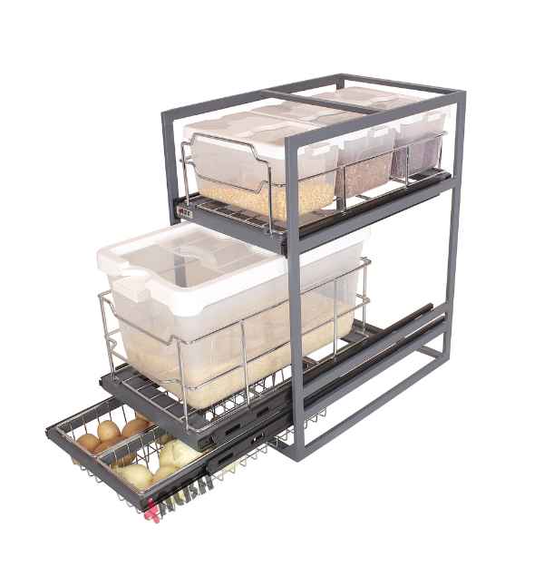 سبد چند منظوره ترکیبی سه طبقه مدل K1043 از برند آلبا، یک انتخاب هوشمندانه و کاربردی برای افرادی است که به نظم، دسترسی سریع و زیبایی در آشپزخانه اهمیت میدهند. این محصول با طراحی سه طبقه و ساختار ترکیبی، فضای داخلی کابینتهای یونیت 40 را به شکل بهینه سازماندهی میکند.