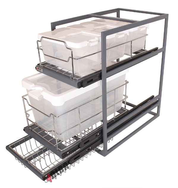 با ارتفاع 70 سانتیمتر و عمق 53 سانتیمتر، سبد K1043 فضای کافی برای نگهداری انواع وسایل روزمره مانند شیشههای سس، بطریهای روغن، قوطیهای ادویه، بستههای خشکبار یا ظروف کوچک آشپزخانه فراهم میکند. طراحی طبقات بهگونهای است که امکان دستهبندی اقلام مختلف بهصورت جداگانه را به شما میدهد، در حالی که دسترسی به آنها بسیار آسان است.